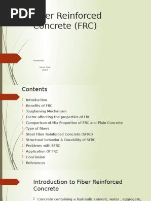 Sumit thakur civil fiber reinforced concrete frc seminar and ppt with pdf report.
