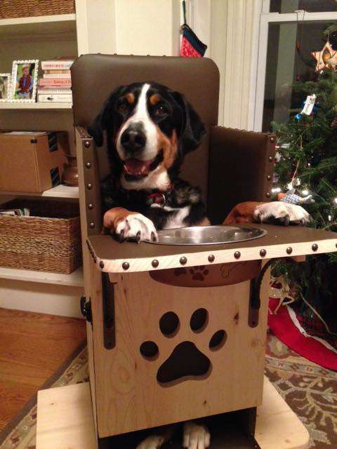 Named after the dog who the original chair was designed for who went on to live a long and happy life this little throne seats the dog upright and allows the dog and owner to comfortably make it through meal time.